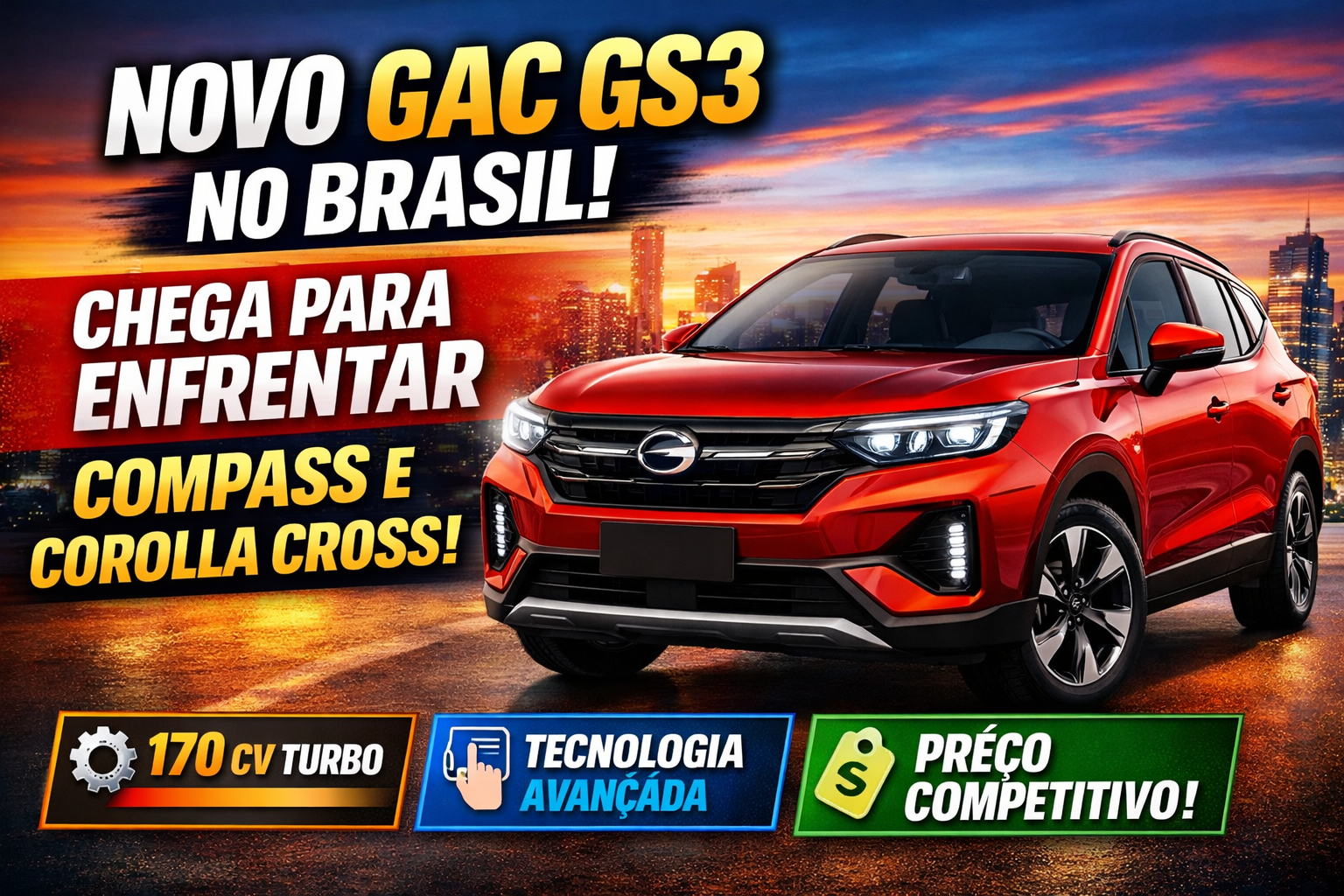 GAC GS3 chega ao Brasil com proposta ousada, tecnologia avançada e preço competitivo para enfrentar SUVs médios como Compass e Corolla Cross
