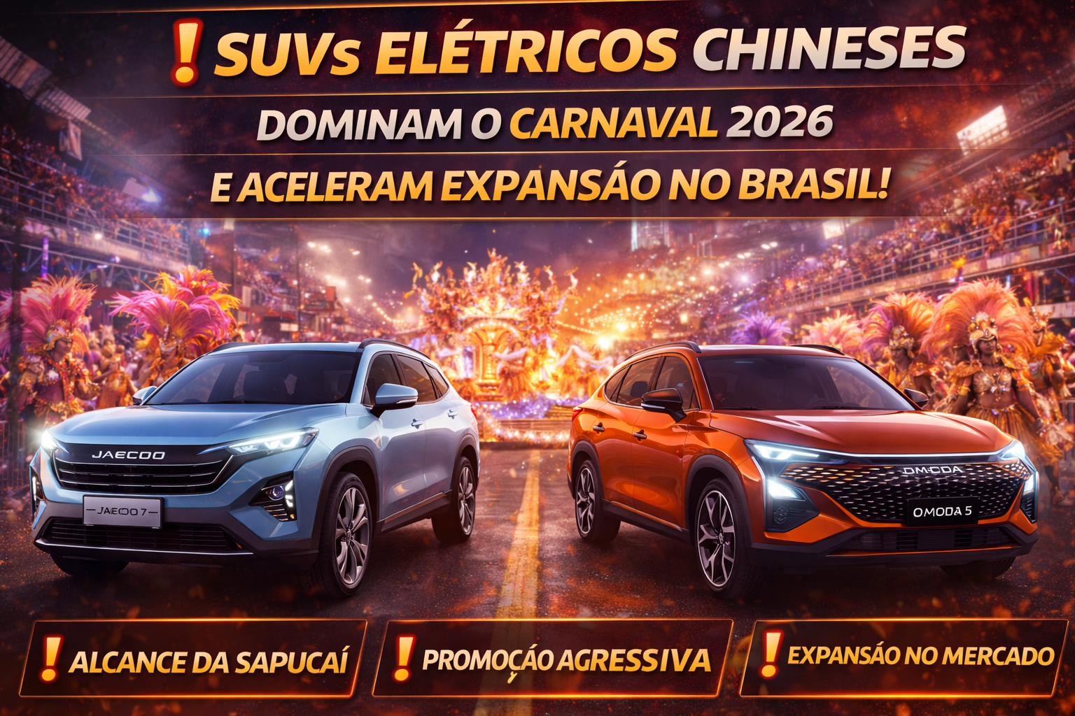 O Carnaval de 2026 não foi marcado apenas por samba, alegorias e celebridades. Além do brilho das escolas de samba, os holofotes também iluminaram os SUVs elétricos chineses que cruzaram a Marquês de Sapucaí antes dos desfiles oficiais. A ação promovida pela Omoda & Jaecoo transformou a avenida em uma poderosa vitrine de marketing automotivo.
