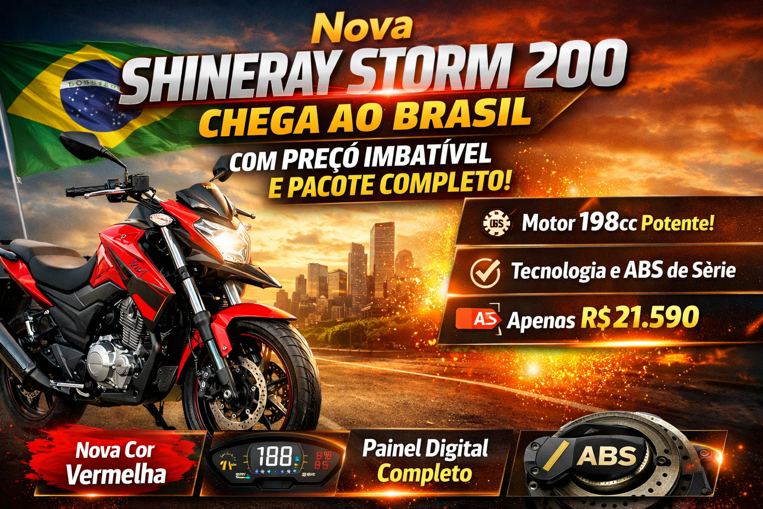 A Shineray Storm 200 acaba de ganhar destaque no mercado brasileiro ao receber uma nova opção de cor e manter sua proposta de excelente custo-benefício. Além disso, o modelo continua apostando em um conjunto equilibrado entre desempenho, tecnologia e preço acessível, o que reforça sua competitividade no segmento.
